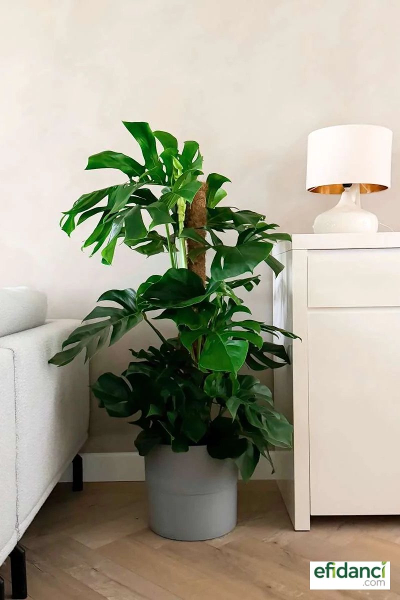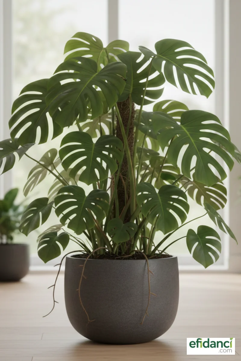 Evlerin ve ofislerin gözdesi, eşsiz yaprak formlarıyla modern iç mekan dekorasyonunun vazgeçilmezi Deve Tabanı (Monstera deliciosa), şimdi 100-150 cm boyutuyla mekanlarınıza tropikal bir atmosfer ve zarafet katmaya hazır. Büyük, delikli ve parlak yeşil yapraklarıyla adeta yaşayan bir sanat eseri olan bu bitki, aynı zamanda doğal bir hava temizleyici görevi de görür.