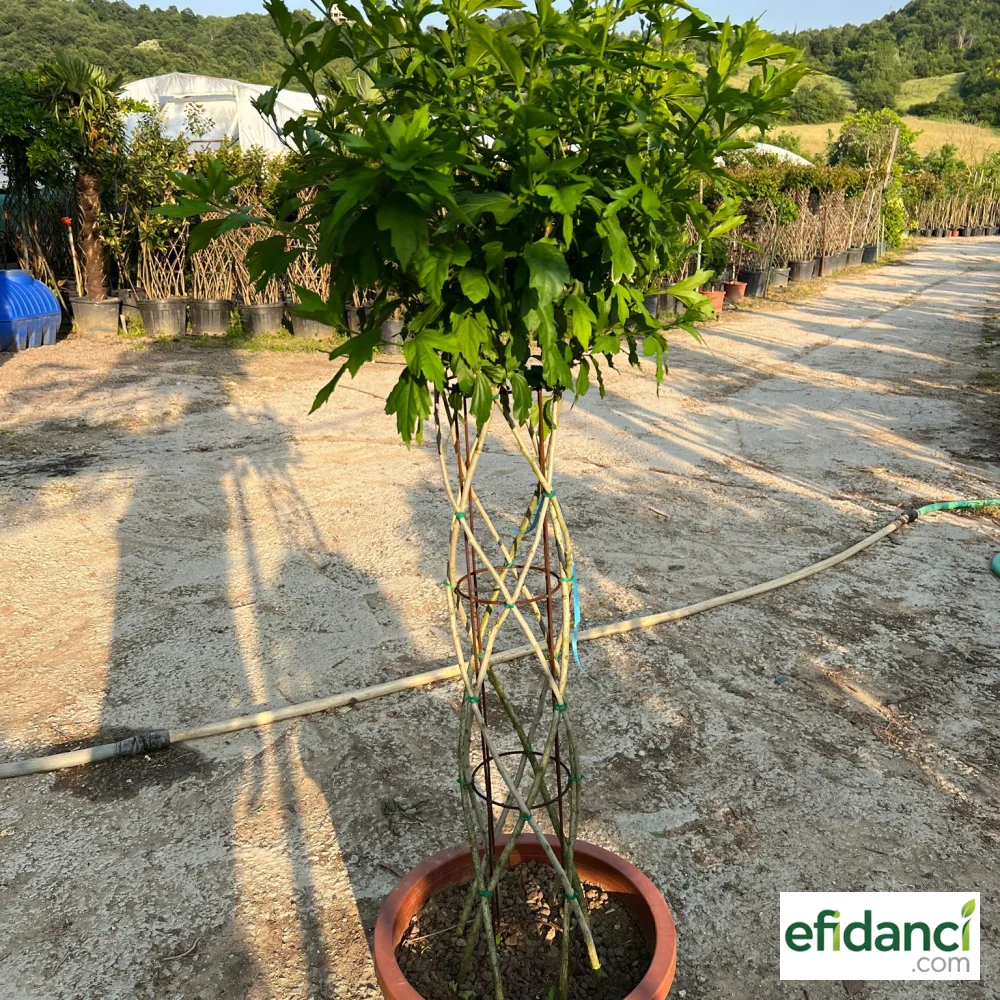 Her mevsim canlılığını koruyan, parlak yaprakları sayesinde yılın her dönemi estetik bir görünüm sunar. Örgülü formu, bitkinin doğal güzelliğine sanatsal bir boyut katarken, bahçe girişlerinde, teraslarda, saksılarda veya özel köşelerde odak noktası olarak mükemmel bir seçenektir. Hem modern hem de klasik bahçe düzenlemelerine kolayca uyum sağlar.