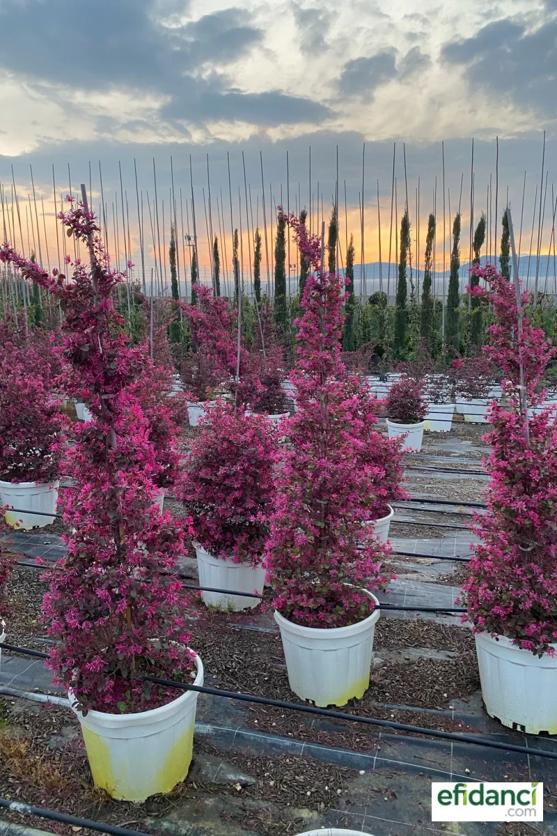 Bahçenize egzotik bir dokunuş katmak ve yıl boyu sürecek görsel bir şölen yaratmak istiyorsanız, Piramit Rüya Çiçeği (Loropetalum chinense) tam size göre. Göz alıcı bordo renkli yaprakları ve baharın gelmesiyle açan fuşya-pembe, örümcek benzeri narin çiçekleriyle adeta bir sanat eseri sunar. 125-150 cm boyundaki bu özel bitki, bahçenizin odak noktası olmaya hazır, sağlıklı ve formda bir yapıya sahiptir. Çit bitkisi olarak, tek başına bir odak noktası olarak veya farklı bitkilerle kombinlenerek kullanılabilir.