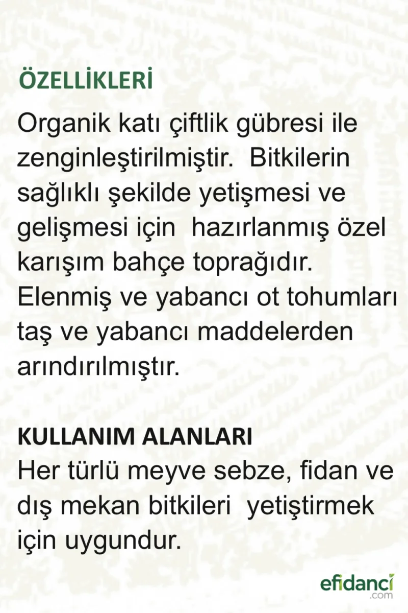 Bahçenize veya saksılarınıza hak ettiği değeri verin. "Zenginleştirilmiş Bahçe Toprağı" ile bitkilerinizin muhteşem dönüşümüne tanık olun ve bereketli hasatların keyfini çıkarın. Hemen sipariş verin, yeşeren bir dünyaya adım atın!